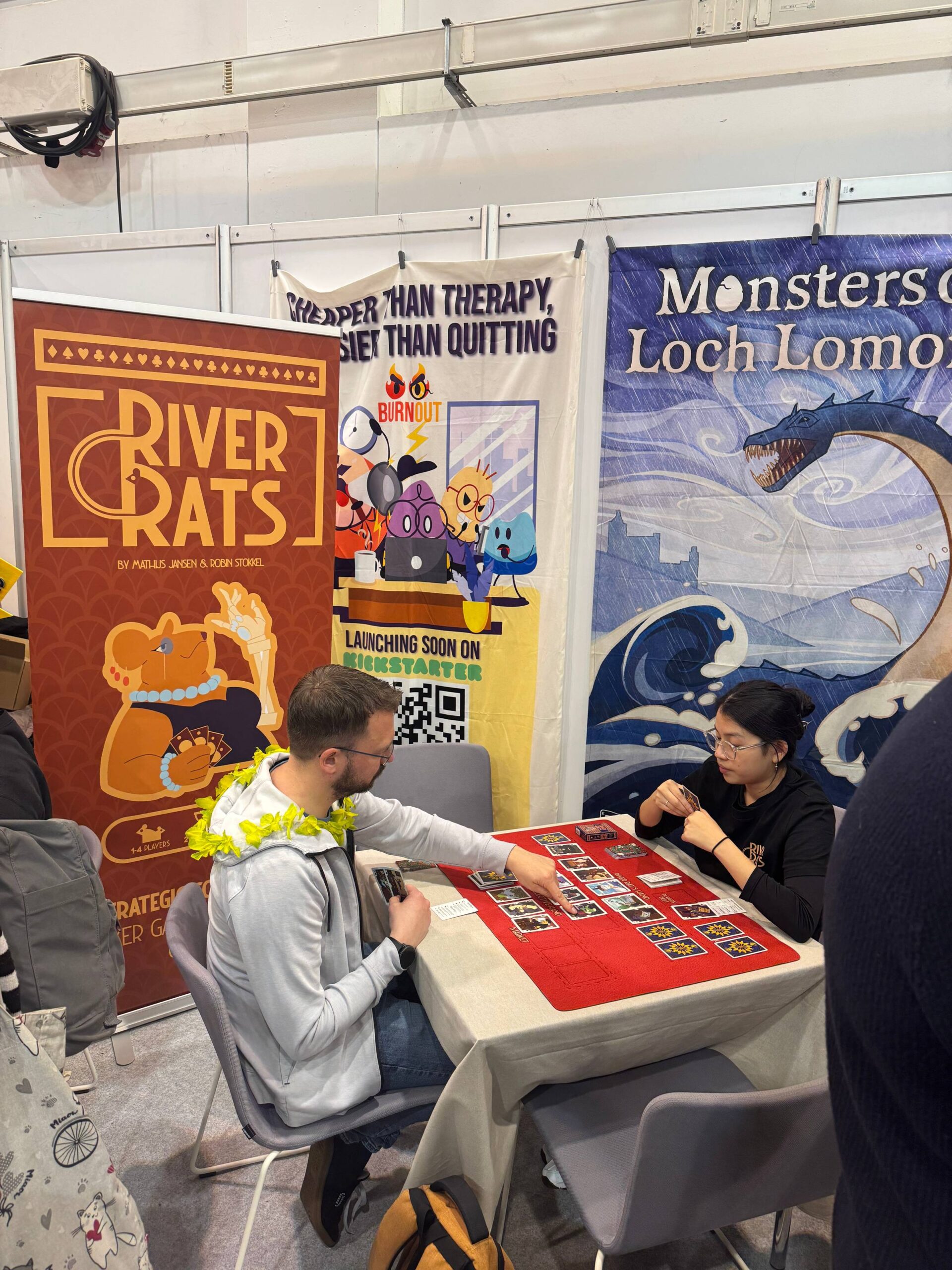 The days at Spiel are all pretty similar and consist of attending the pre-booked meetings, demoing River Rats or Monsters of Loch Lomond, selling the games, and going by some booths of publishers who I hadn’t managed to get in touch with before the con.